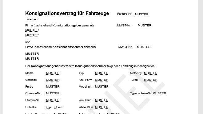 Elektronische Vorlage zum online-Ausfüllen eines Konsignationvertrages für Fahrzeuge (Dateiformat: Microsoft Word)