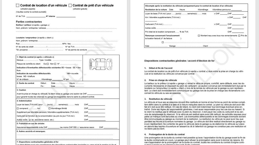 Download Contrat de location d'un véhicule / Contrat de prêt d'un véhicule (état 2016)