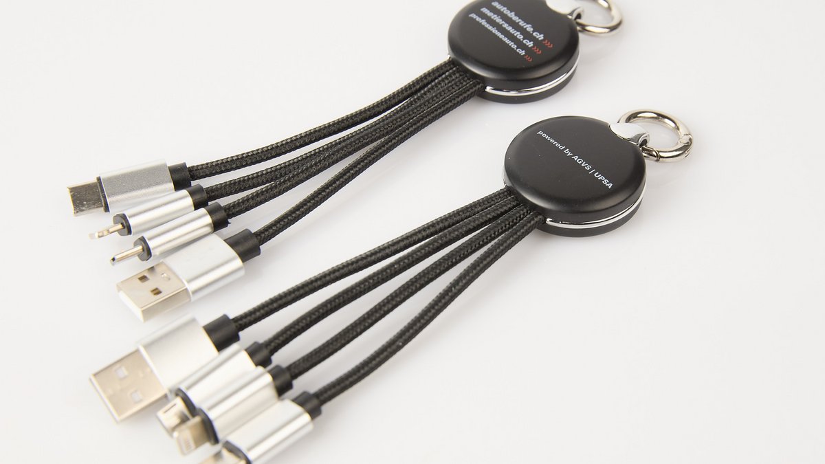 Cavo con anello portachiavi, compatibile con tutti gli smartphone grazie alle quattro connessioni (connettore USB, Micro USB, Tipo C, iPhone)