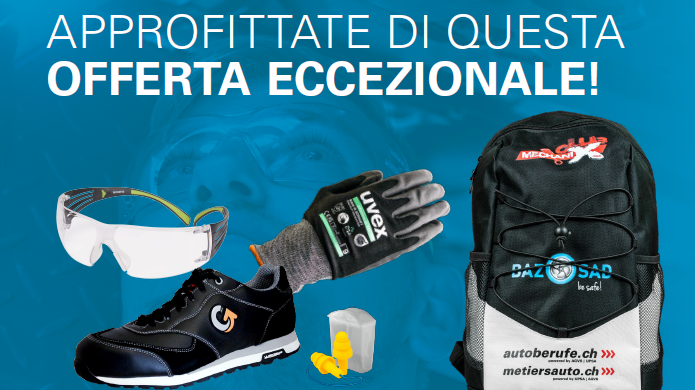 La Safety Bag contiene dispositivi di protezione individuali (DPI) e prescritti dalla legge come occhiali di protezione, scarpe di sicurezza, tappi per le orecchie e guanti di sicurezza. Fornito in un pratico zaino. Questa Safety Bag non contiene le scarpe di sicurezza.